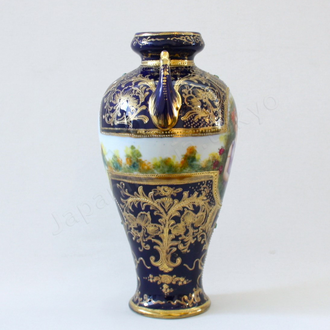金彩コバルトポートレイト柄花瓶
